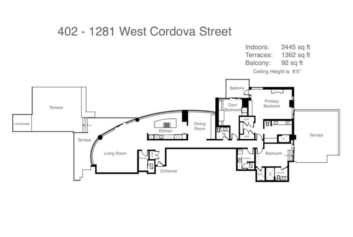 Features in this stunning 4th floor condo include exclusive use of 1454 sq ft of outdoor space spread over 3 terraces and one private balcony (includes fire pit and BBQ), Harbour views, over-height ceilings, floor to ceiling windows, hardwood floors, modern high-end finishes, air conditioning, Full-size stainless steel appliances; Sub-Zero fridge, stove & oven, dishwasher, and microwave. Separate dining area with built-in cabinetry, hallway has gallery hanging system for art & paintings, Office includes built-in study desk and wine fridge, Spacious bedrooms, primary bedroom with fireplace, 5-piece ensuite, and generous wardrobe space. Secondary bedroom with 4-piece ensuite and walk-in closet, in-suite dedicated laundry room with washer, dryer, ample storage, sink, and countertop, and resort style amenities with 24hr full-service concierge. Includes monthly gardening services.