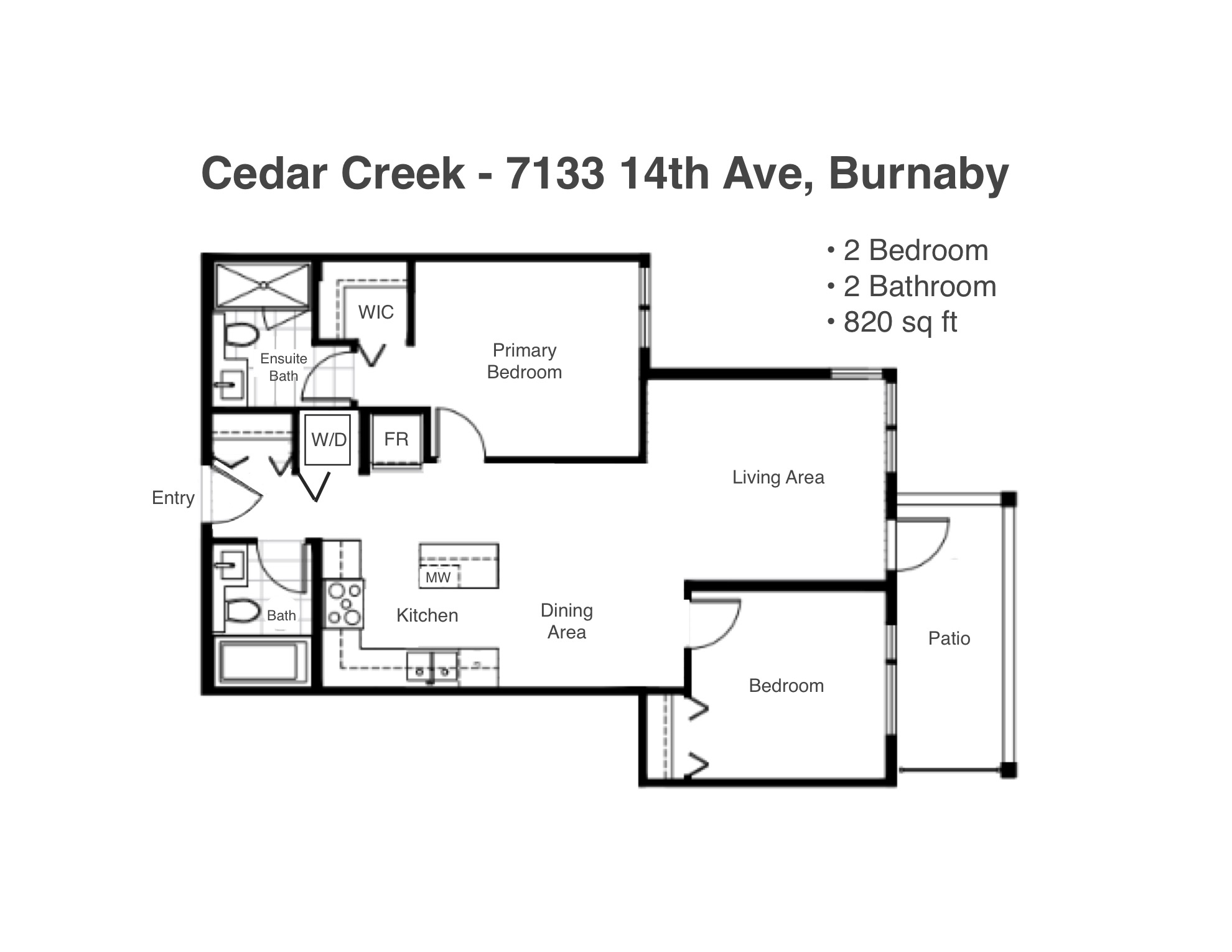 The Cedar Creek development is located in the Edmonds neighbourhood of Burnaby. It is a short 10-minute walk to the Expo Line at the Edmonds Skytrain Station and Bus Loop.