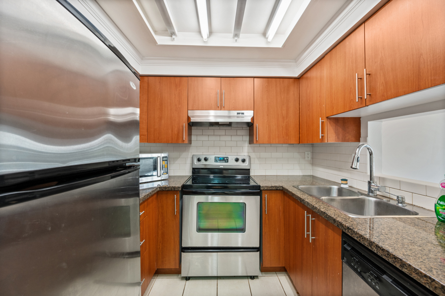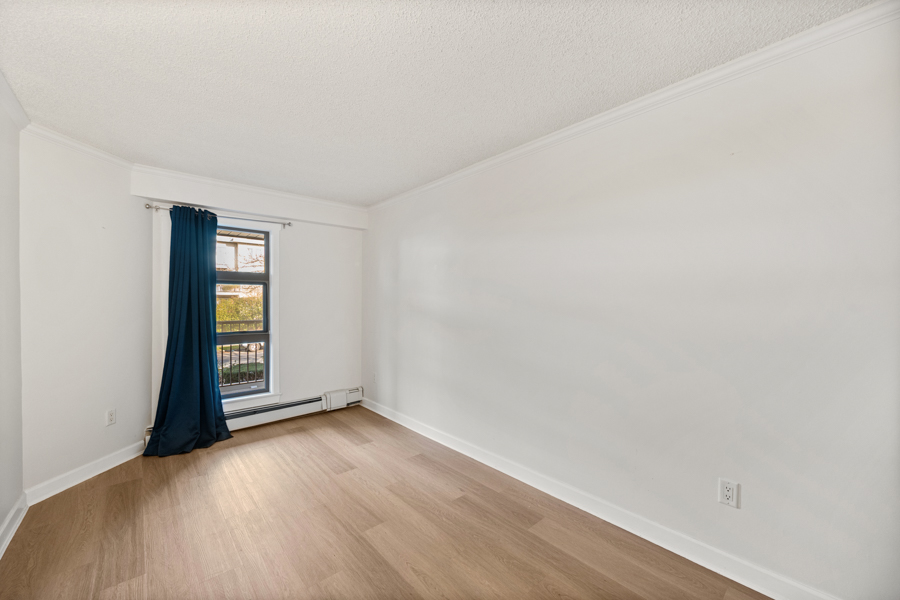 Features in this spacious 2nd floor unit include separate kitchen with stainless steel appliances: fridge, oven, dishwasher, and microwave, quartz countertops in kitchen and bathroom, laminate Flooring, spacious primary bedroom, bathroom with tub, and private Balcony. Shared Laundry – machines on every floor – no charge to use machines