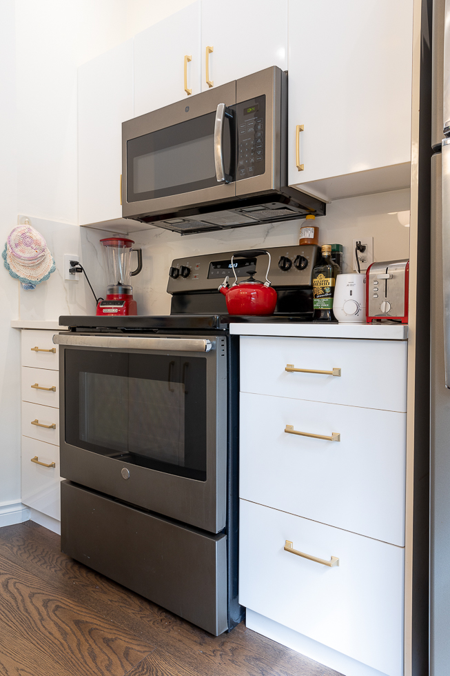 Features in this cozy townhouse unit include built-in electric fireplace, open kitchen with breakfast bar and ample storage, full-size Stainless-steel appliances, spacious primary bedroom with walk-in closet, hardwood flooring in living areas and carpeted bedrooms, and in-suite washer and dryer.