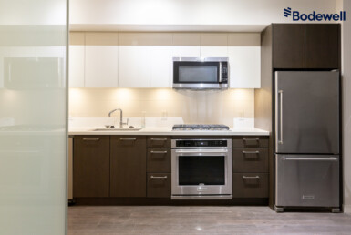 Features in this fully rebuilt and modernized character home include 10′ ceilings, brand-new flooring, walls, ceilings, and light fixtures throughout. Gourmet kitchen with Pot Filler Arm water dispenser, brand-new stainless-steel appliances: Downdraft Gas Cooktop, Oven, Microwave, Fridge, and Dishwasher. French doors open up from the kitchen onto an 80 sq ft private deck with gas BBQ hookup. Additional storage just off of the dining area. Independently controlled air-conditioning and Security System. Shared newly landscaped backyard. Recessed outlet and cable hookup in living room – ready for a mounted TV. The living room and each bedroom have fibre and cable installed for high-speed Wi-Fi, data, TV, and communication. Accommodating and supporting independent uses for entertainment or as a home office. Shared bike rack/lockup area. In-suite washer and dryer.