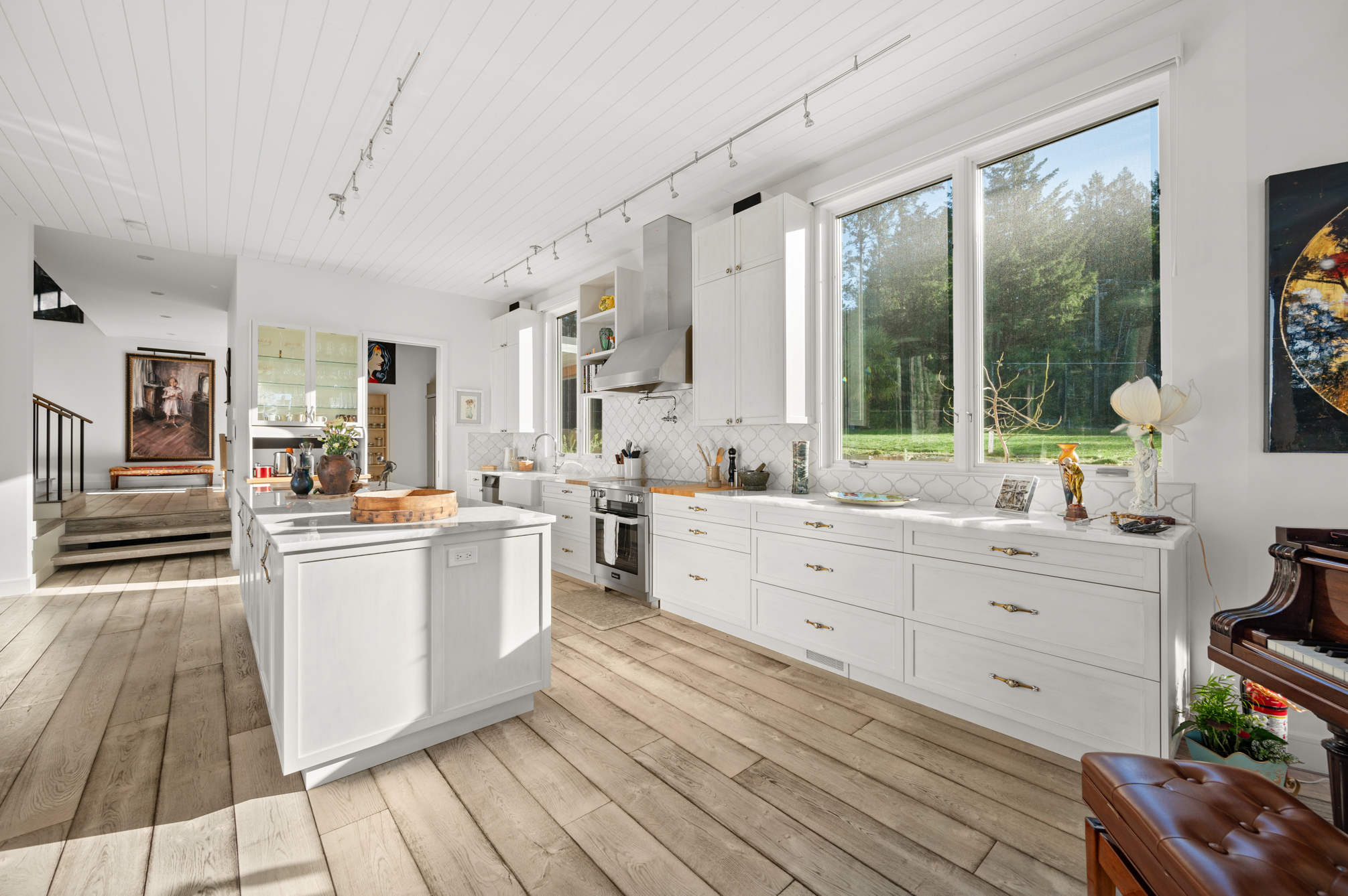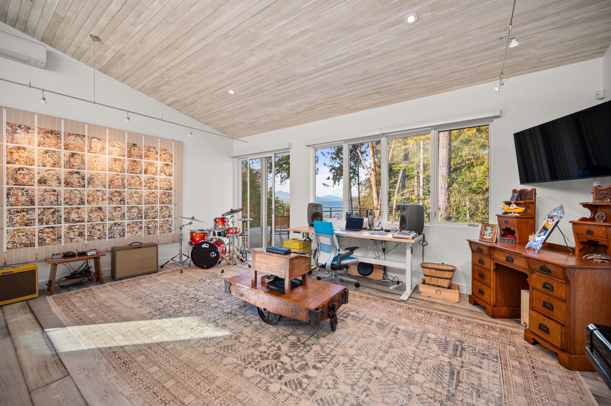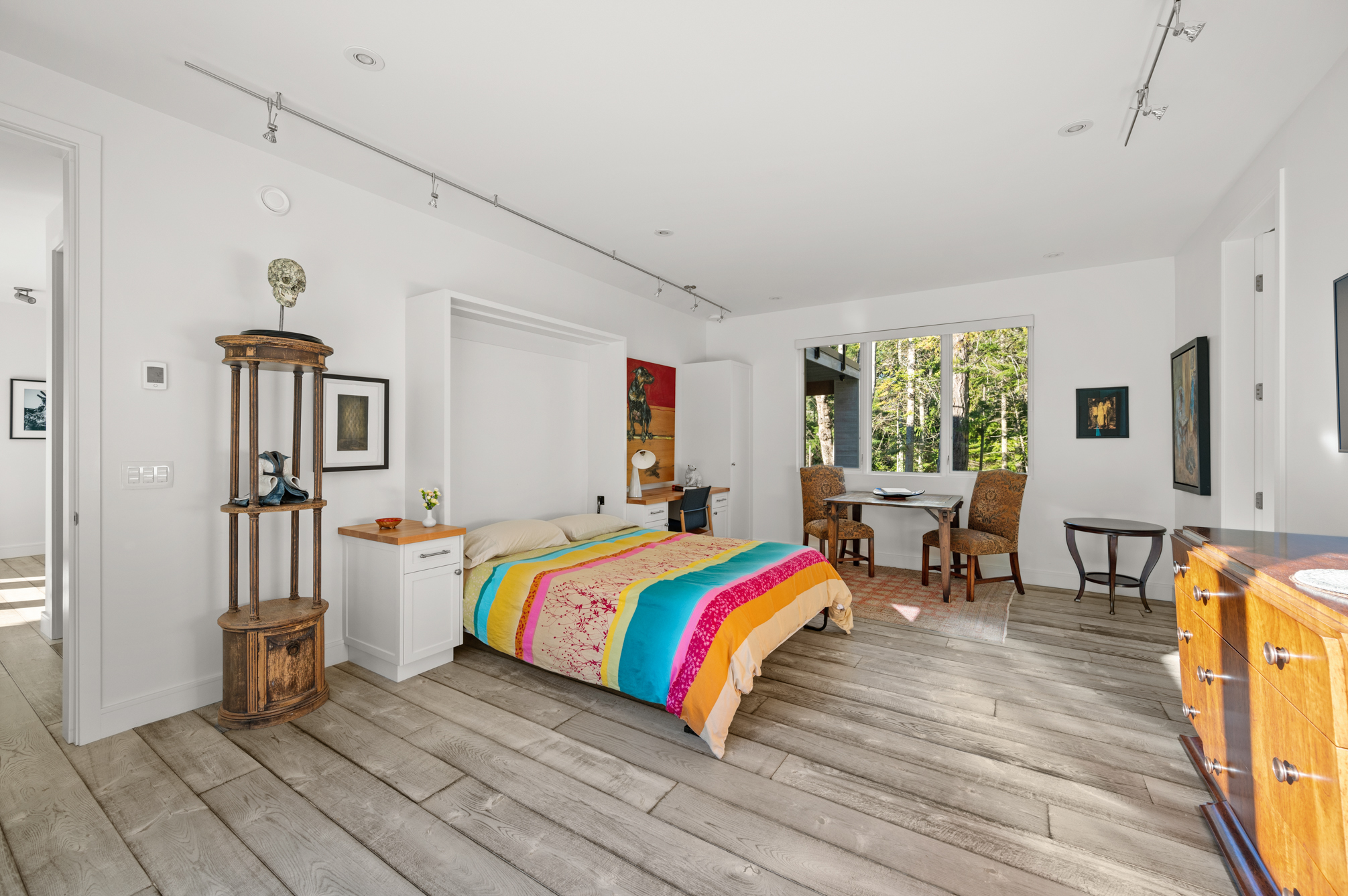 Both guest suites have Murphy beds so that they may be multi-use spaces. The large second bedroom also functions as a fabulous office and has an extra-large full view deck for entertaining or just stargazing, ensuite bath. There is beautiful custom finished 8” wide plank flooring throughout.