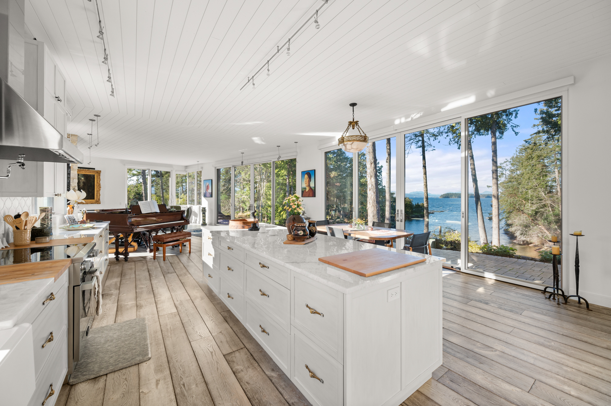 This spectacular new home by architect Neil Morie, perched on a private bay, captures breathtaking NW coastal views. Though it is said about many homes, this is the one the cliche was written for. It must be experienced to be appreciated.