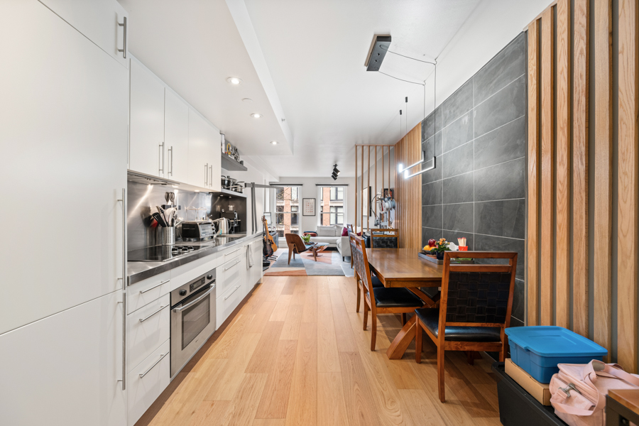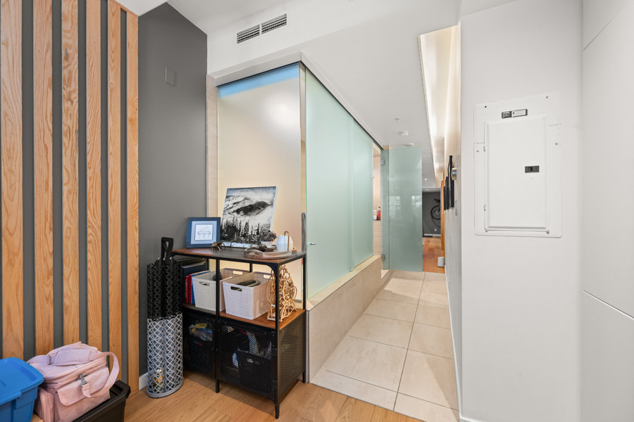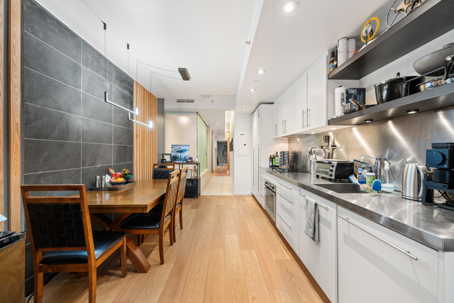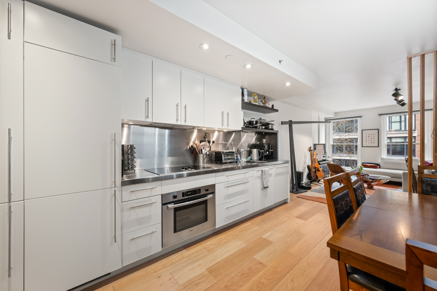 Features in this Heritage Loft Conversion include an open concept layout with engineered wide plank hardwood flooring throughout and Geothermal heating and cooling (A/C). The kitchen has Integrated and stainless-steel appliances: fridge, glass cooktop, oven and dishwasher. Clever design and storage solutions throughout, such as a Custom millwork storage/closet system. Separate walk-in shower and deep soaker tub. Full-size in-suite washer and dryer.