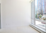 Features in this one bedroom include frosted glass sliding doors, wheelchair accessible bathroom, laminate flooring throughout living areas, plush carpet in bedrooms, open plan kitchen with European cabinetry systems, elegant polished-edge quartz countertops, stainless steel and integrated appliances: fridge, stove/oven, dishwasher, and microwave, in-suite washer and dryer, and a large flex space (perfect as an office or storage room). Amenities include fireside lounge and library with over-height ceilings, social room with chef’s kitchen and formal dining area, 2,100 sqft gym with change rooms and showers, 12-seat surround-sound theatre, business facilities – meeting room and conference room.